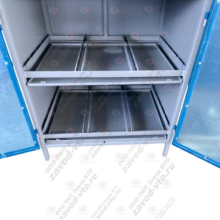 Шкаф аккумуляторный ШМА-05 предназначен для размещения и зарядки аккумуляторов. Широкая область применения ШМА-05 – от гаражей до автосервисов и крупных промышленных предприятий. Надежная металлическая конструкция ШМА-05 может быть дополнительно оснащена регулируемыми опорами, зарядными и пуско-зарядными устройствами, соединительными проводами и электрическими разъемами для подключения аккумуляторов. Благодаря эстетичному внешнему виду и соответствию нормативным требованиям по обеспечению жесткости конструкции, шкафы производства ООО «ПКП «Завод ВТО» позволяют удовлетворять потребности Заказчика на любых участках работ.