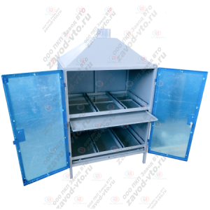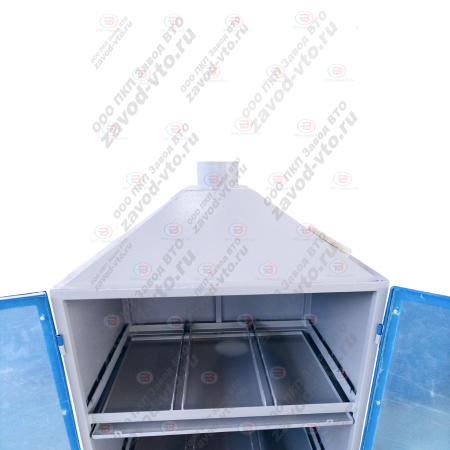 Для удаления вредных паров, возникающих при зарядке аккумуляторов, предусмотрен патрубок в верхней части вытяжного зонта шкафа ШМА-05 для подключения к вентиляционной системе помещения.